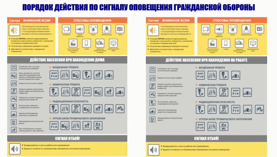 ПОМНИТЕ! Действовать по сигналам гражданской обороны нужно быстро, но без суеты и паники. В этих условиях дорога каждая минута!