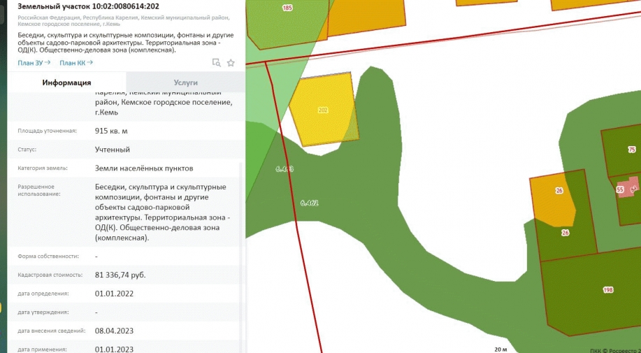 Лот №3. Продажа земельного участка из земель населенных пунктов, имеющего кадастровый номер 10:02:0080614:202, площадью 915 кв.м, местоположение: Республика Карелия, Кемский район, г. Кемь, вид разрешенного использования - «Беседки, скульптура и скульптурные композиции, фонтаны и другие объекты садово-парковой архитектуры. Территориальная зона -Общественно-деловая зона (комплексная) ОД(К)».
