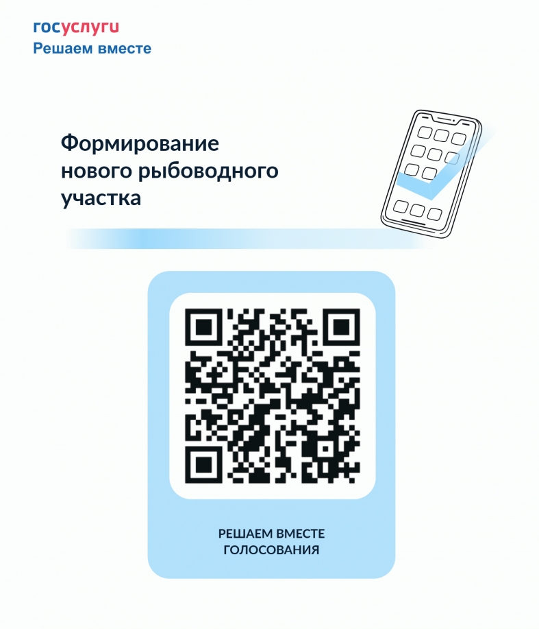 Дорогие друзья! Электронная часть опроса жителей г. Кемь проводится на платформе Госуслуги "Решаем вместе". Принять участие в опросе по формированию нового рыбоводного участка на Путкинском водохранилище (река Кемь) можно по QR-коду, или перейдя по ссылке