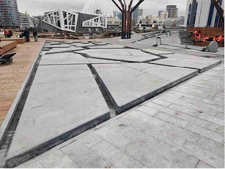 - Гранитные плиты для мультимедийного фонтана в Екатеринбурге (некоторые достигают 4 метров в длину).