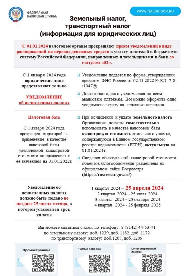 Федеральная налоговая служба информирует