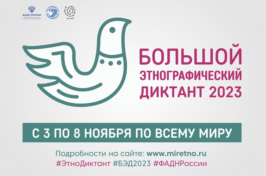 С 3 по 8 ноября 2023 года пройдет ежегодная Международная просветительская акция «Большой этнографический диктант», которая знакомит с культурой народов, проживающих в России, а также позволяет оценить общий уровень этнокультурной грамотности.