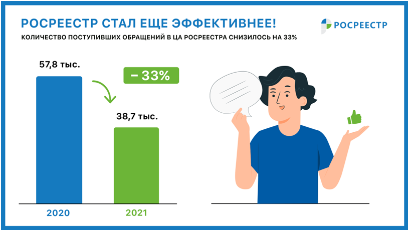 Росреестр стал еще эффективнее: количество поступивших обращений граждан в 2021 г. сократилось на треть