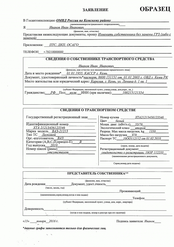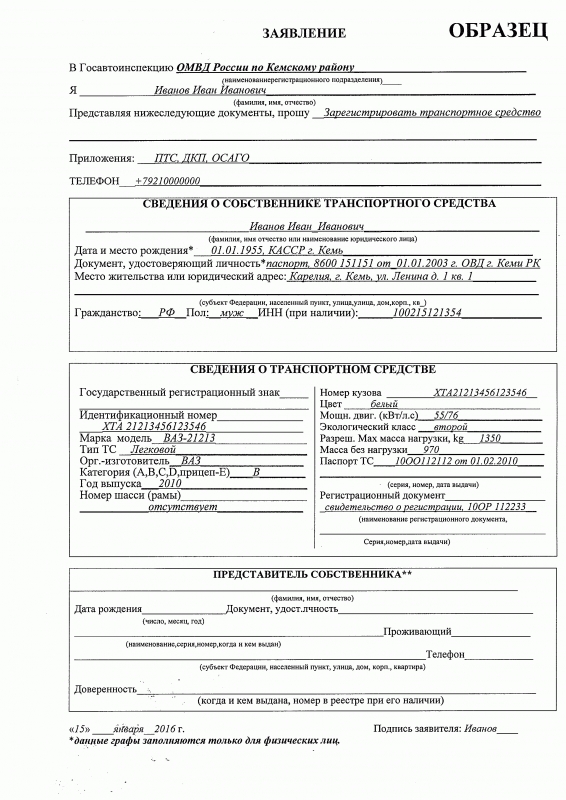 Образцы заявлений по регистрации ТС